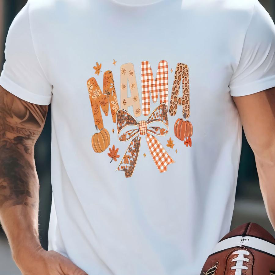 Fall Mama Shirt: Coquette Bow, Pumpkin Season Mom Tee T-shirt