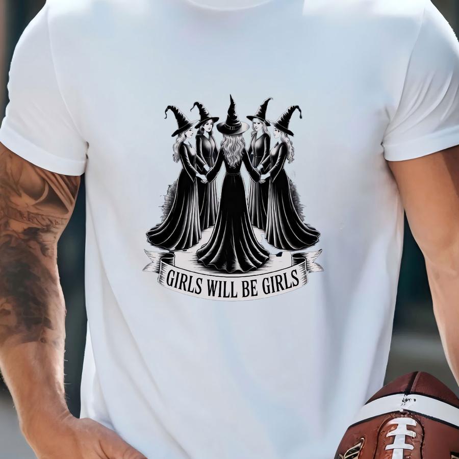 Vintage Witch Sweatshirt: Girls Will Be Girls Halloween Tee T-shirt