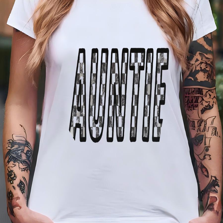 Checkered Auntie Crewneck | Cute Aunt Sweatshirt, Crewneck, Graphic Hoodie, Retro Crew, New Aunt Gift, Gift For Her, Gift For Sister T-shirt