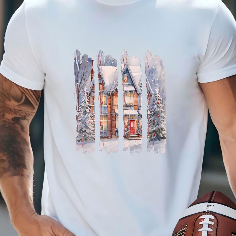 Christmas Shirt With Holiday Scene Design, Nature Lovers Gift, Brushstroke Shirt, Winter Garment Dyed Shirt, Gift For Her T-shirt