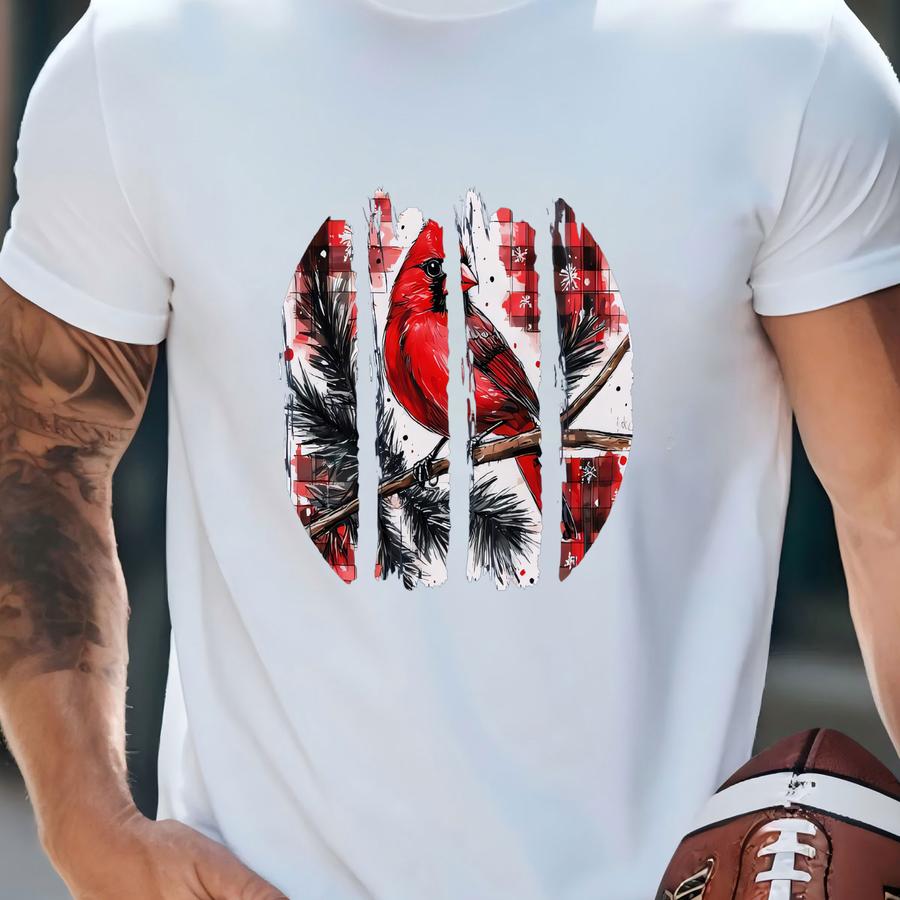 Christmas Shirt With Red Bird Cardinal Design, Nature Lovers Gift, Brushstroke Shirt, Winter Garment Dyed Shirt, Gift For Her T-shirt