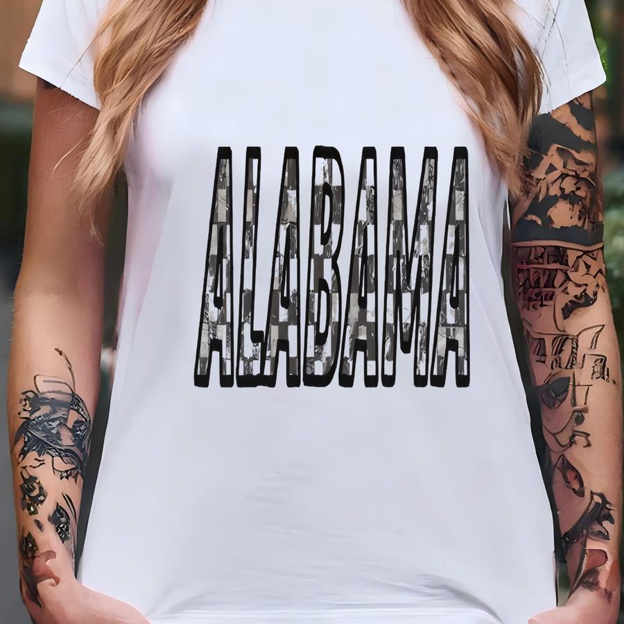Checkered Crewneck | Hoodie, State Sweatshirt, Cute Bama Sweater, Vintage Pullover, Retro Crew, Gift For Her T-shirt