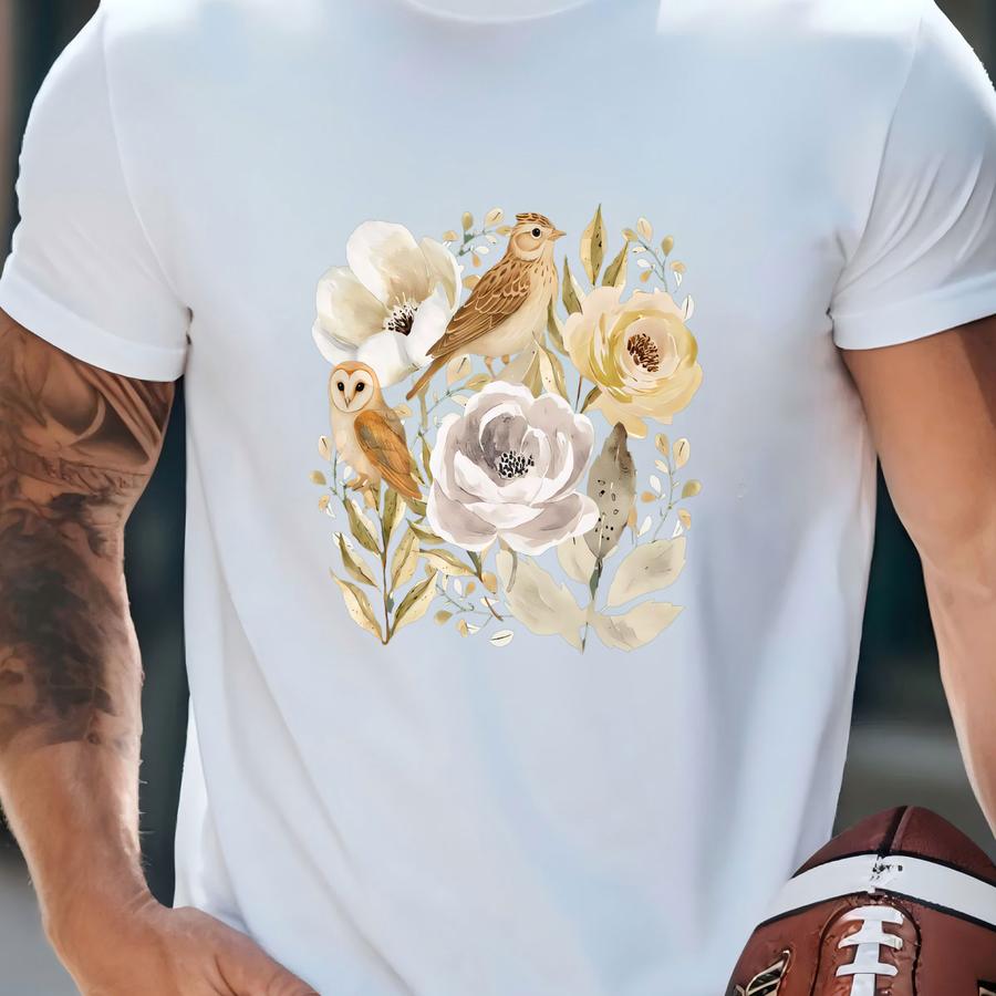 Floral Owl Hoodie, Eco-friendly Apparel, Nature Lover Gift, Unisex Casual Wear, Summer Outfit, Bird Lover Tee T-shirt