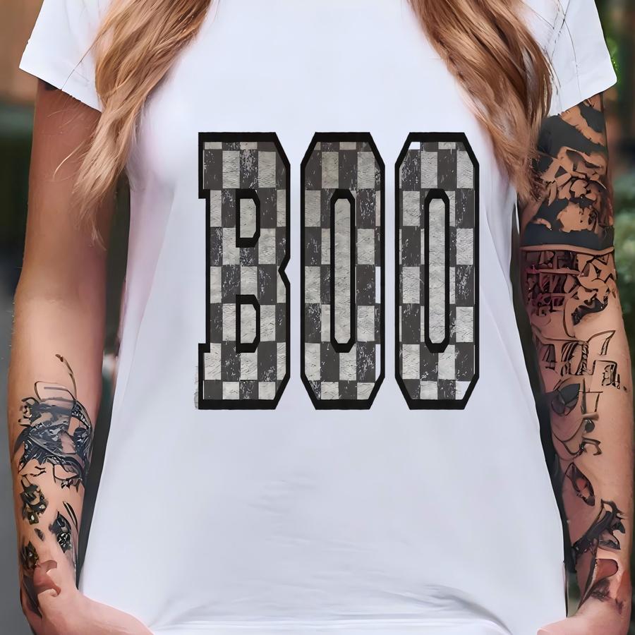 Checkered Boo Crewneck | Retro Spooky Season Sweatshirt, Spooky Basket Ideas, Halloween Womens Crew, Ghost Boo Hoodie, Cozy Fall, Spook T-shirt