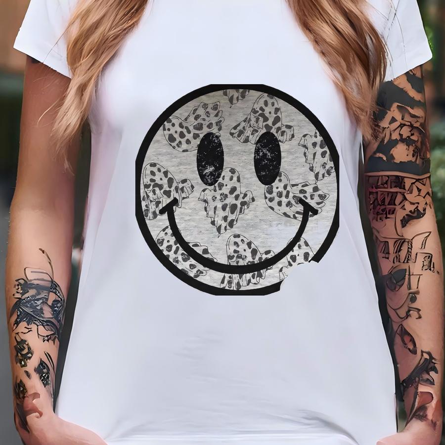 Cow Print Ghost Crewneck | Halloween Face Sweatshirt, Retro Hoodie, Crewneck, Let's Go Ghouls Crew, Graphic Hoodie, Boo T-shirt