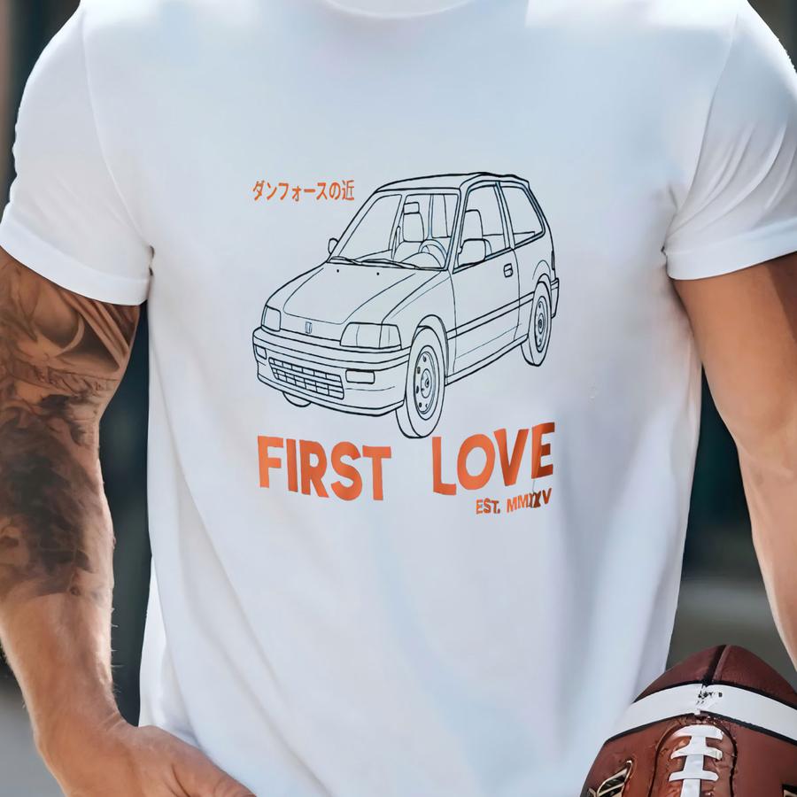 First Love Jdm Ef9 Japanese Street Style Car Shirt, Retro Honda Hatchback Tee, Offdanforth Essentials Tier T-shirt