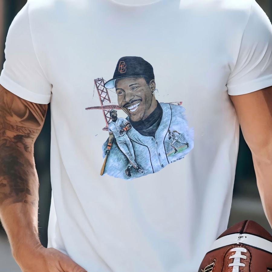 Vintage 1992 Barry Bonds San Francisco Giants Mlb Baseball Golden Gate Bridge Art Caricature Graphic Shirt Usa Size M/l T-shirt