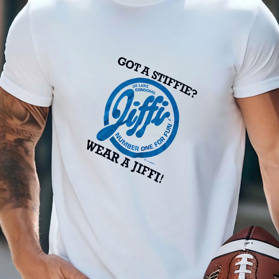 Vintage 80s Jiffi Condoms Got A Stiffie? Wear A Jiffi! Funny Humor Contraceptives Safe Sex Brand Promo Graphic Shirt Usa Size S/m T-shirt