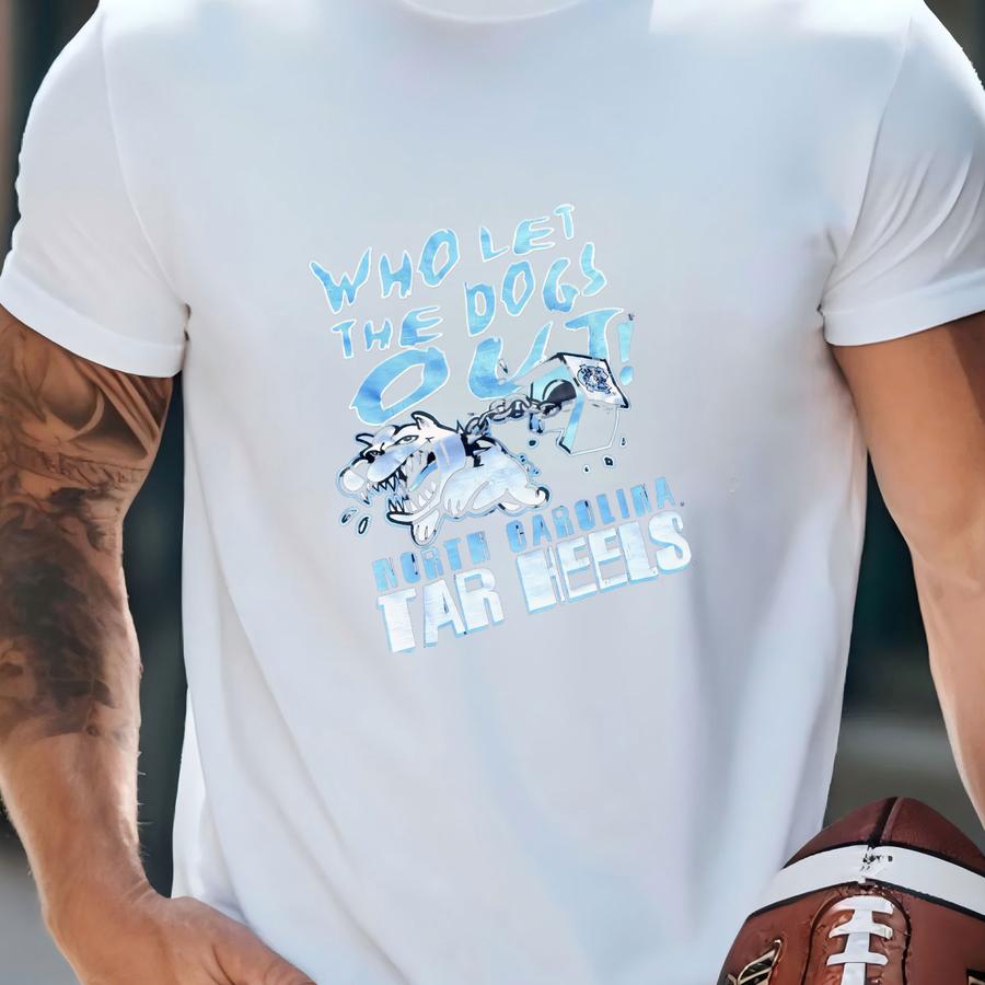 Vintage 2000s University Of North Carolina Unc Tar Heels Ncaa Collegiate Sport Attack Who Let The Dogs Out Graphic Shirt Size Large T-shirt