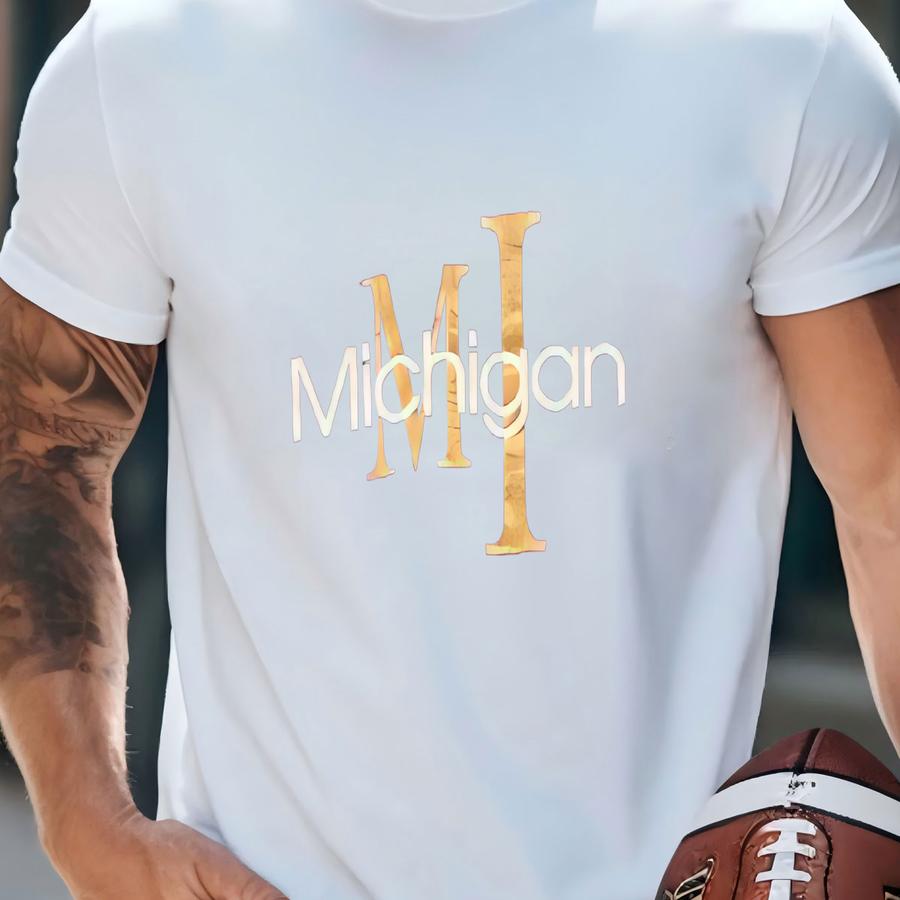 Vintage 90s Michigan Us State Spellout Fruit Of The Loom Tag Crewneck Sweatshirt L Size T-shirt