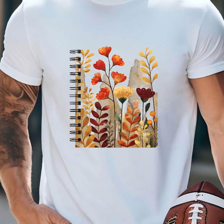 Botanical Notebook Fall Spiral Notepad Gratitude Journal Autumn Travel Diary Seasonal Planner Boho Floral Cottagecore Stationery Gift Idea T-shirt