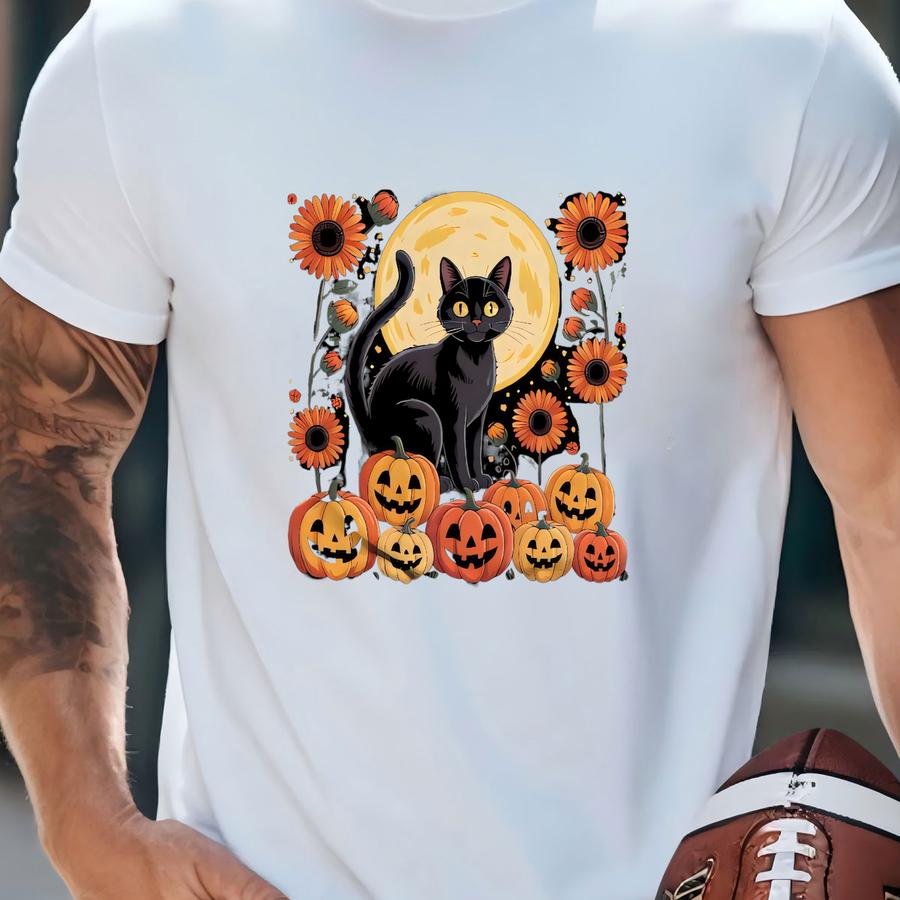 Black Cat Halloween Hoodie Autumn Moon Pumpkin Suower Graphic Tee For Women Spooky October Witchy Fall Gift For Her Mom Shirt T-shirt
