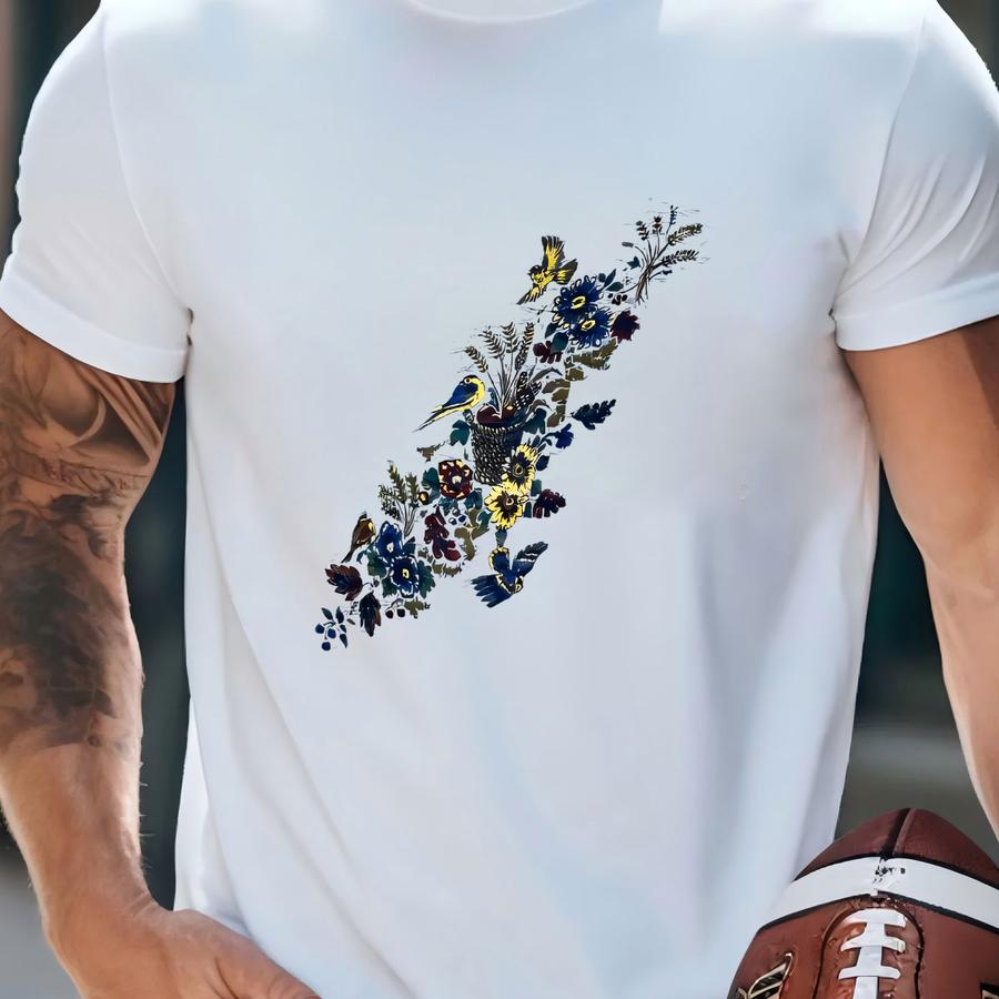 Vintage Birds On Suowers Double Neck Sweatshirt Size M T-shirt