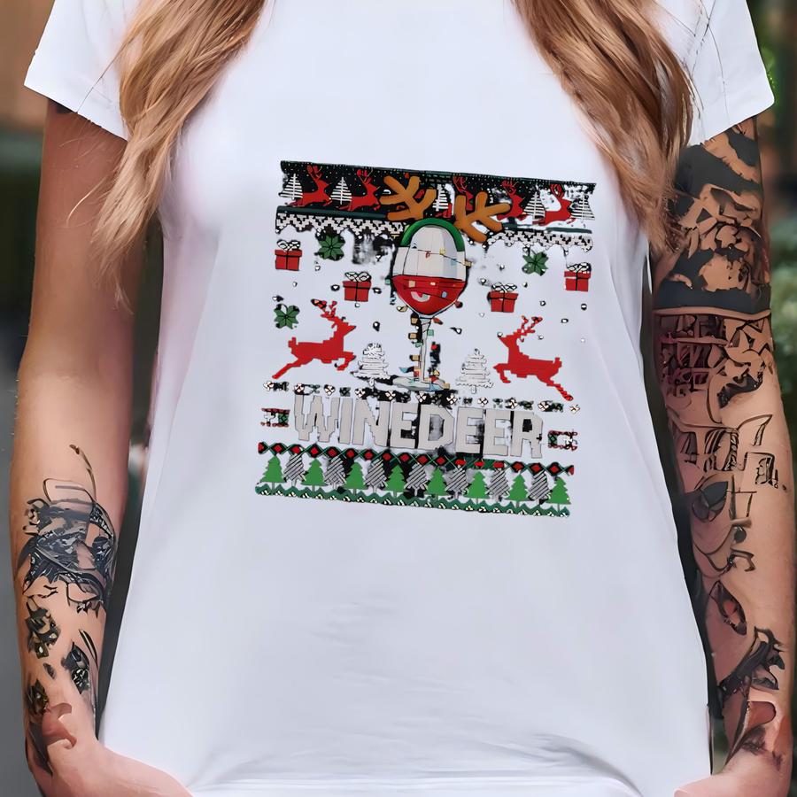 Christmas Wine Shirt, Funny Ugly Sweater Tee, Holiday Reindeer Wine Glass Hoodie, Winedeer Shirt, Festive Xmas Party Drinking Top T-shirt