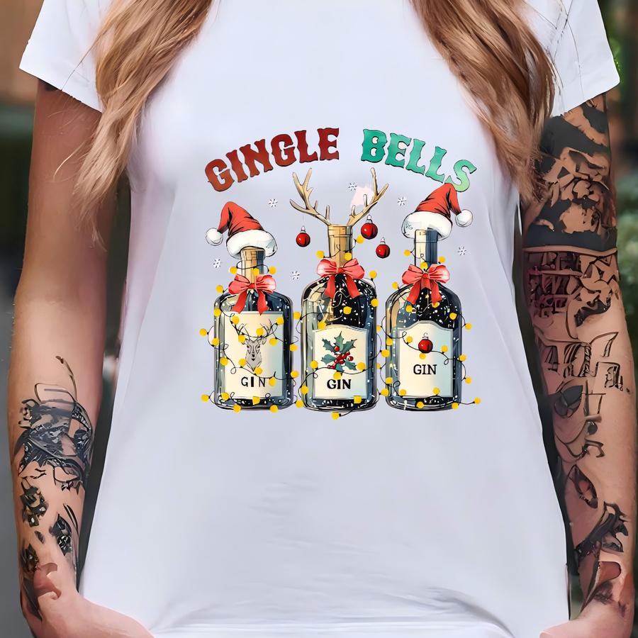 Gingle Bells Shirt, Funny Christmas Gin Hoodie, Holiday Drinking Tee, Xmas Party Cocktail Shirt, Festive Gin Lover Graphic Tee T-shirt