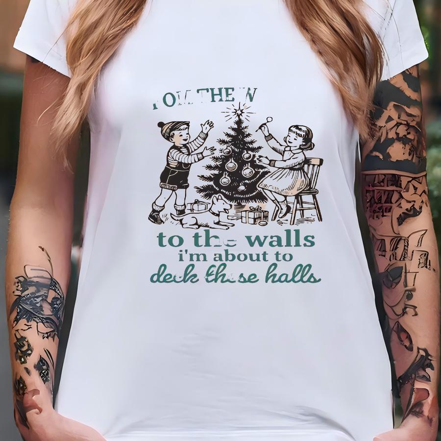 Funny Christmas Shirt, Holiday Graphic Tee, From The Windows To The Walls Xmas Shirt, Retro Festive Deck Halls Sweatshirt T-shirt