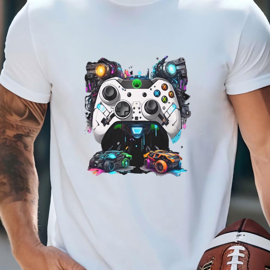 Futuristic Gamer Tee - Unisex Adult Hoodie With Modern Graffiti-style Gaming Controller Sci-fi Vehicles Design T-shirt