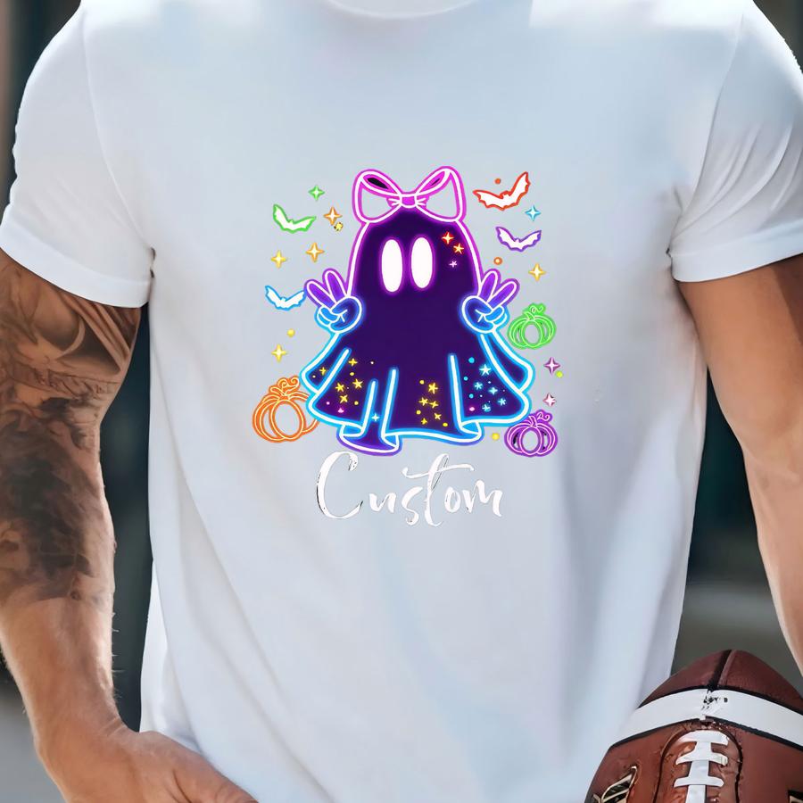 Custom Girls Halloween Tee, Halloween Toddler Tee, Halloween Tee, Kids Halloween Neon Shirt, Cute Ghost Hoodie, Neon Halloween Ghost Shirt T-shirt