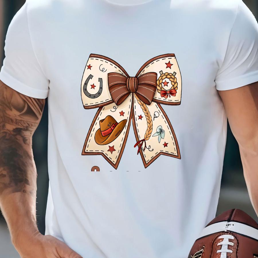 Custom Name Cowgirl Graphic Tee, Personalized Coquette Bows With Name Kids Sweatshirt, Custom Western Natural Shirt, Country Rodeo Outfit T-shirt