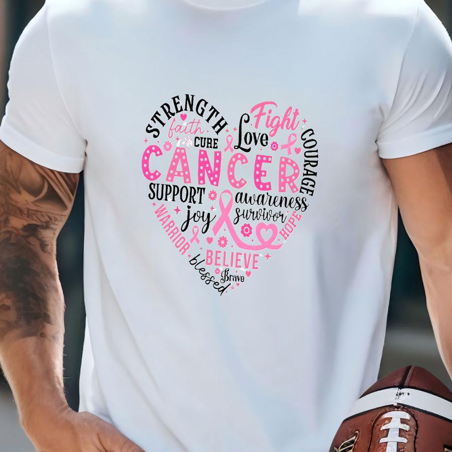 Breast Cancer Heart Shirt, Cancer Awareness Sweatshirt, Pink Ribbon Heart Tee, Motivational Tees, Cancer Gifts For Women, Breast Cancer Gift T-shirt