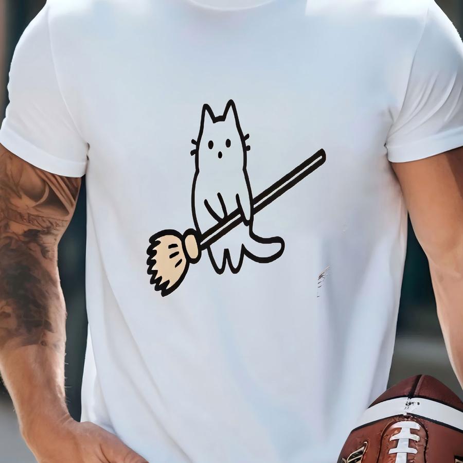 Witch Cat Halloween Tshirt, Retro Black Cat On Broom Tee, Spooky Pink Halloween Shirt, Full Moon Cat Witch Graphic Sweatshirt, Pocket Design T-shirt