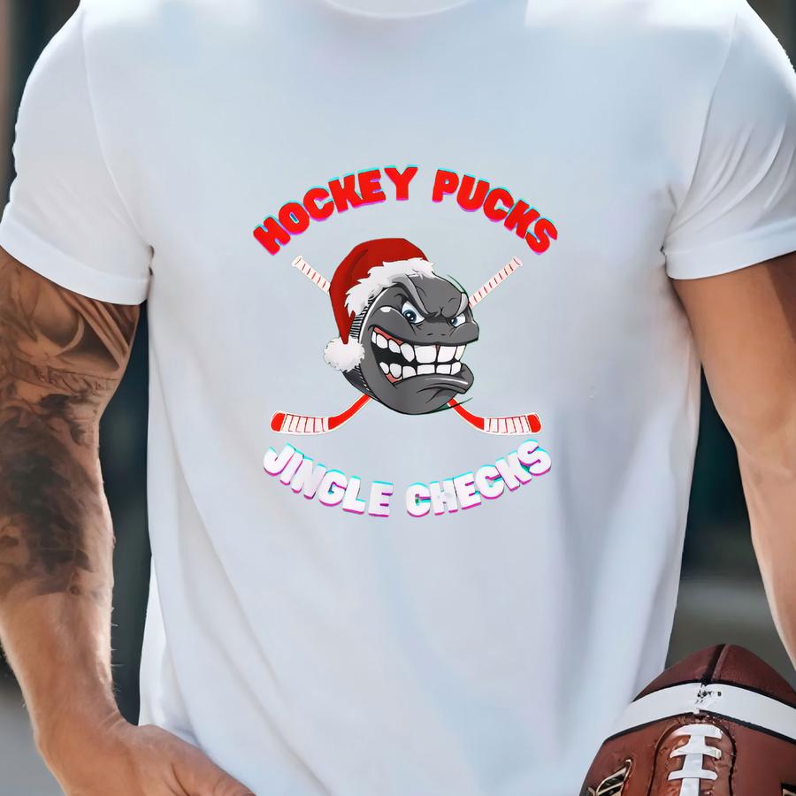 Funny Hockey Christmas Sweater, Hockey Pucks Jingle Checks T-shirt
