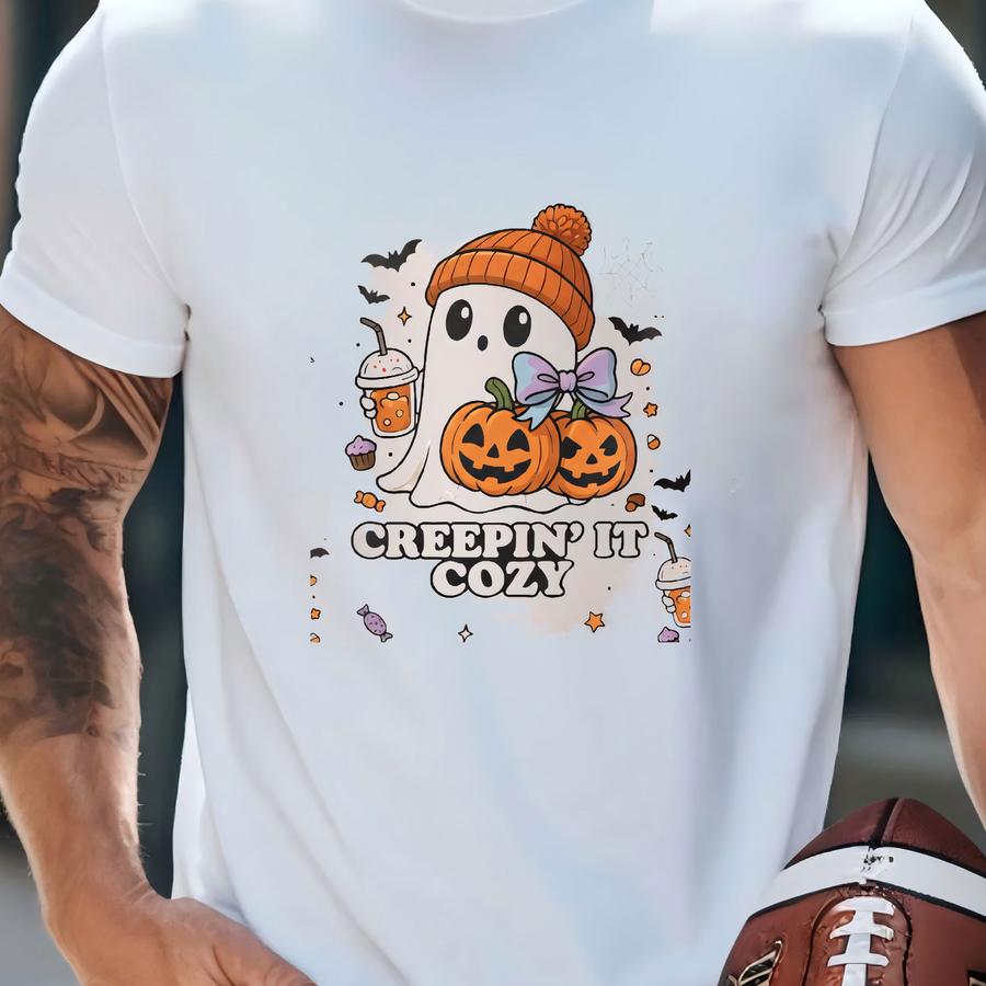 Ghost And Pumpkin Halloween Tee: Spooky Cotton Canvas Shopper T-shirt