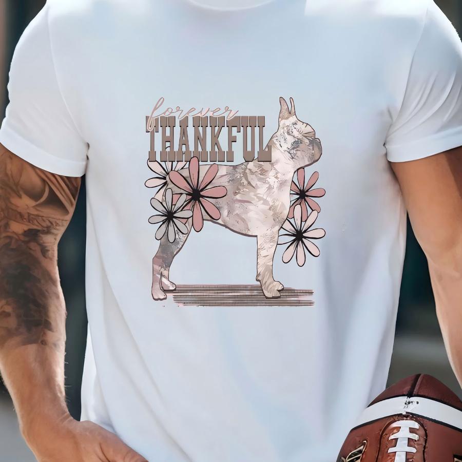 Forever Thankful Boston Terrier Floral Hoodie / Sweatshirt - Dog Lover Gift T-shirt