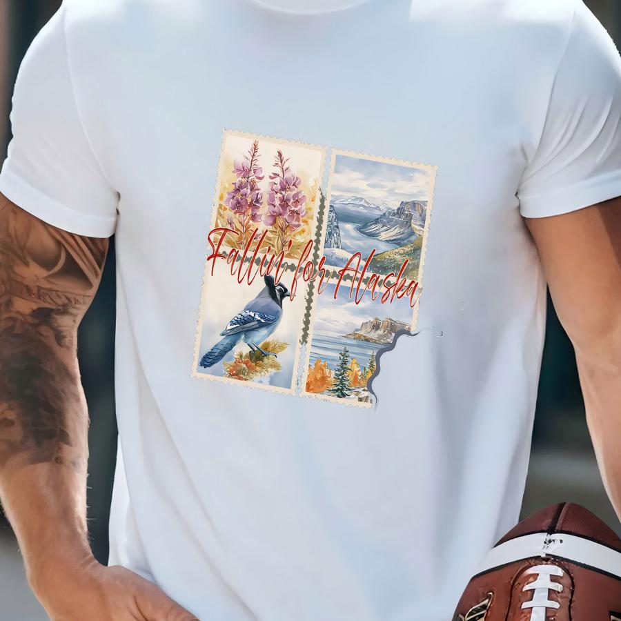Falling For Alaska Tee: Blue Jay Landscape Art T-shirt