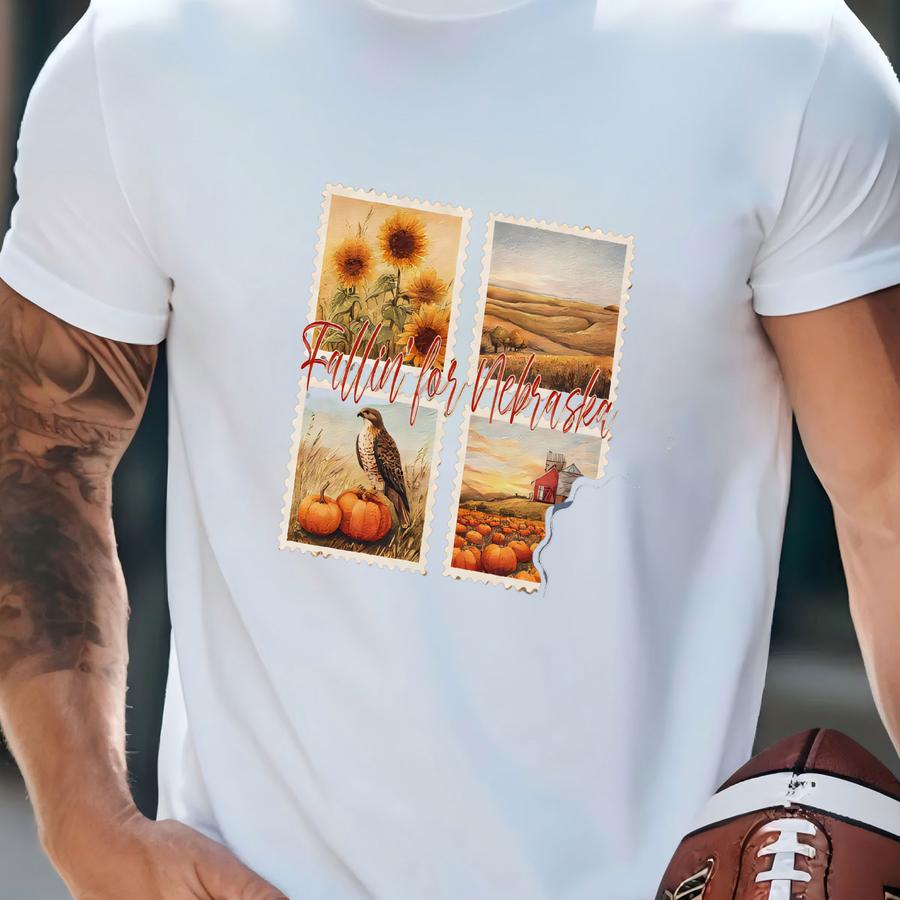 Fall In Nebraska Tee Or Sweatshirt: Suower, Hawk, Pumpkin Design T-shirt