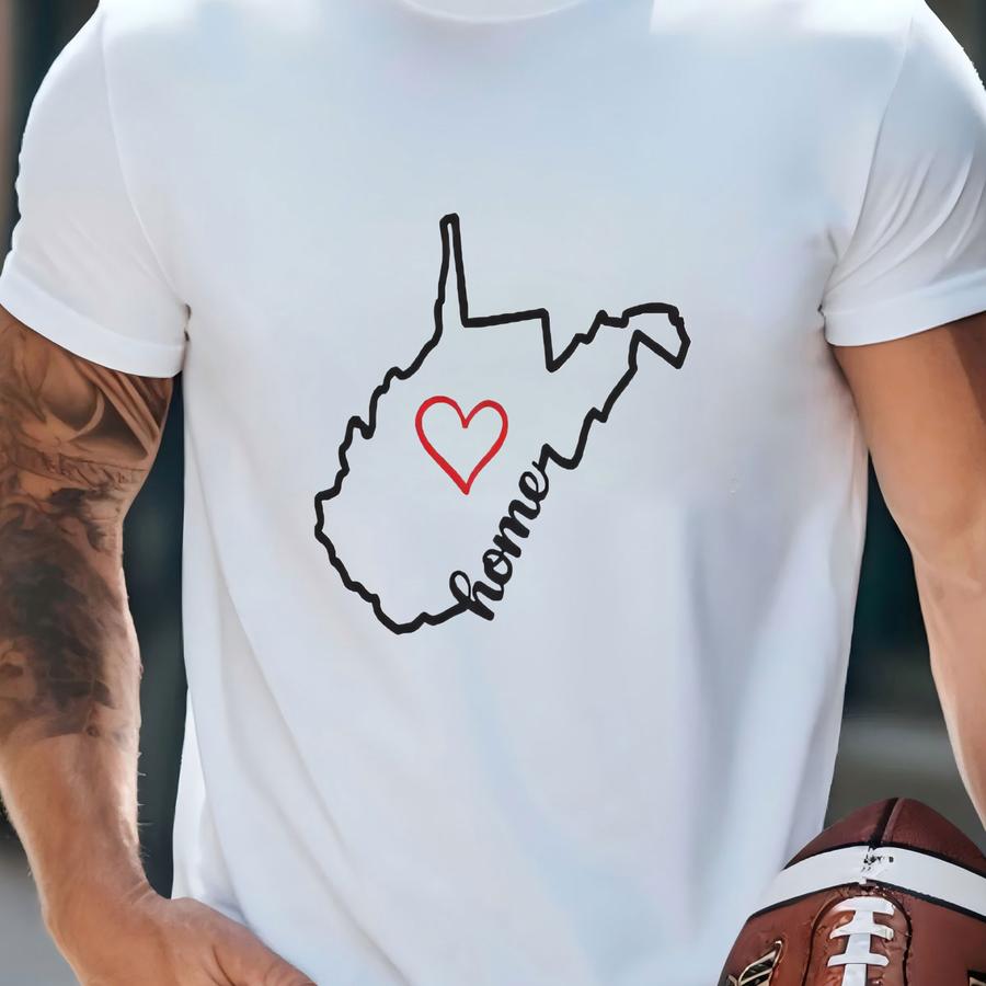 West Virginia Crewneck Sweatshirt, State Outline With Heart Design, Minimalist Appalachian Pride Sweater, Cozy Home State Gift T-shirt