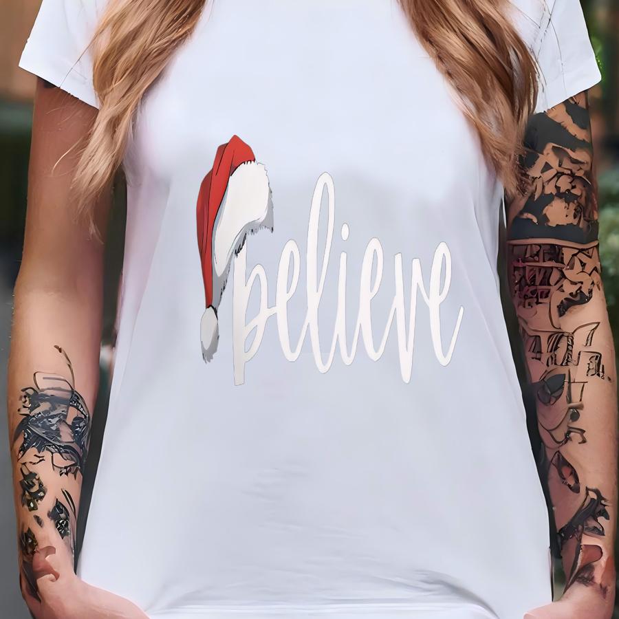 Believe Long Sved Tee, Santa Hat Tee, Santa Claus, Christmas, Holiday, Holidays, Unisex Lightweight Long Sve Tee T-shirt