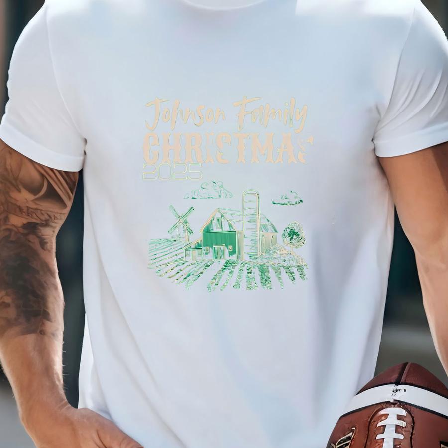 Custom Matching Farm Family Christmas Shirts For 2025: Personalized Ranch Christmas Crew Shirts With Barn Scene For Family Holiday Party T-shirt