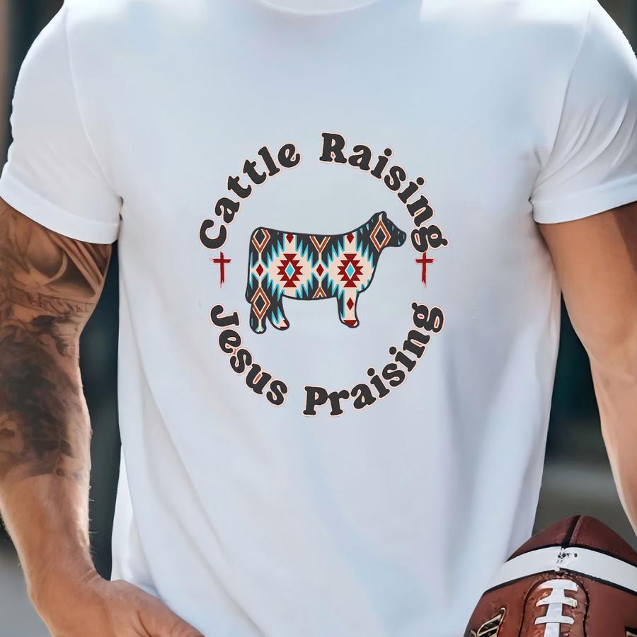 Vintage Aztec Heifer Tshirt For Stock Show: Jesus Praising Coquette Gift For Cattle Rancher T-shirt