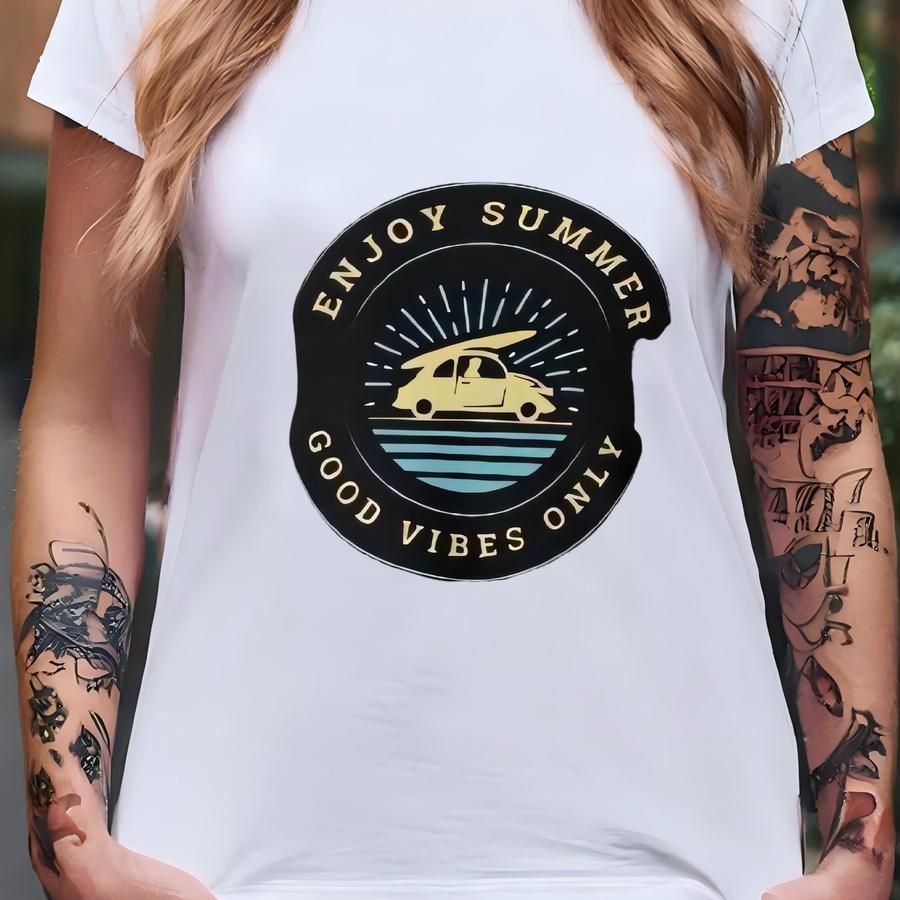 Enjoy Summer, Good Vibes Only T Shirt, Summer Lovers Gift Tee, Sunshine, Summertime, Surfer, Surf, Beetle, Women’s Relaxed V-neck Hoodie T-shirt
