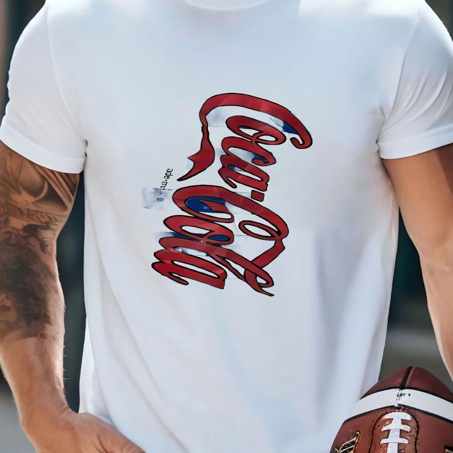 Vintage 1980s Blue And White Striped Spell Out Graphic Tee Shirt (size Adult Small) T-shirt