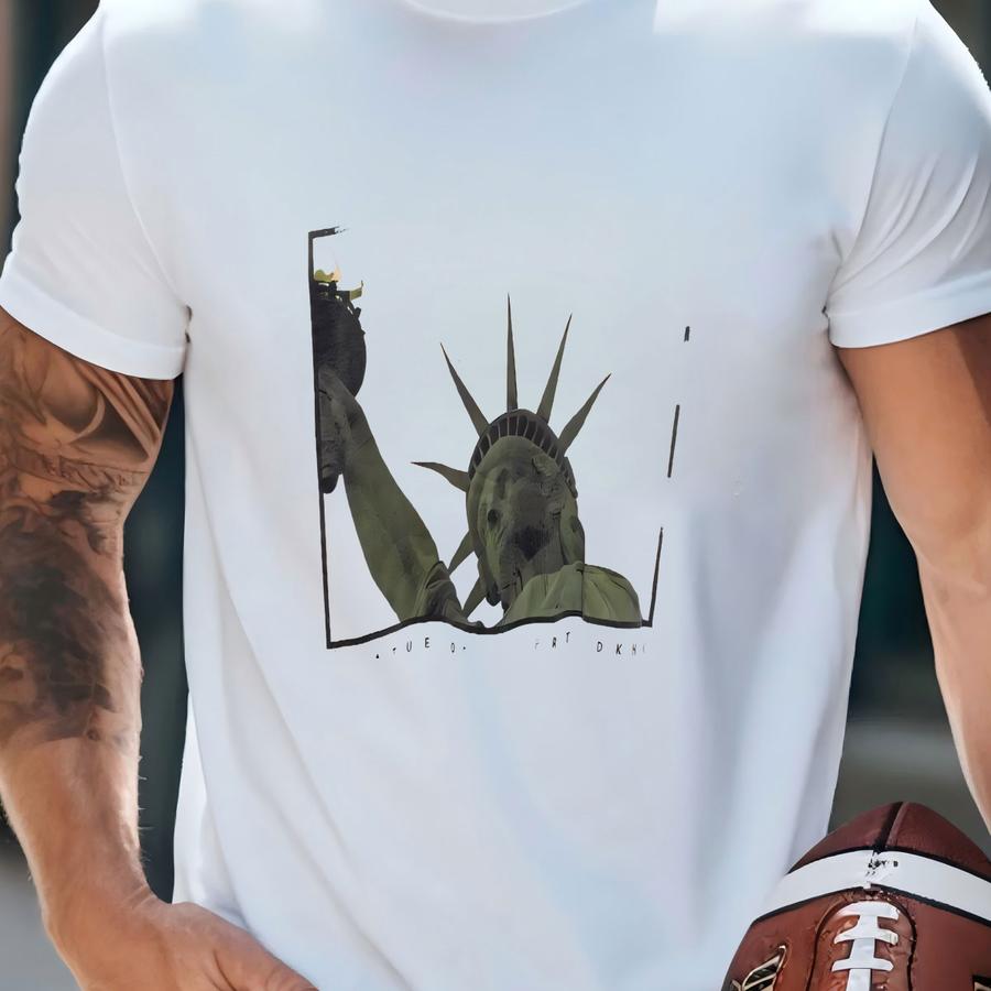 Vintage 1990s Dkny Statue Of Liberty White Graphic Tee Shirt (fits Size Adult Large) T-shirt