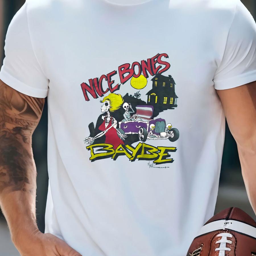 Vintage 1988 “nice Bones Baybe” Skull Skeleton Hot Rod Graphic Tee Shirt (size Adult Xl) T-shirt