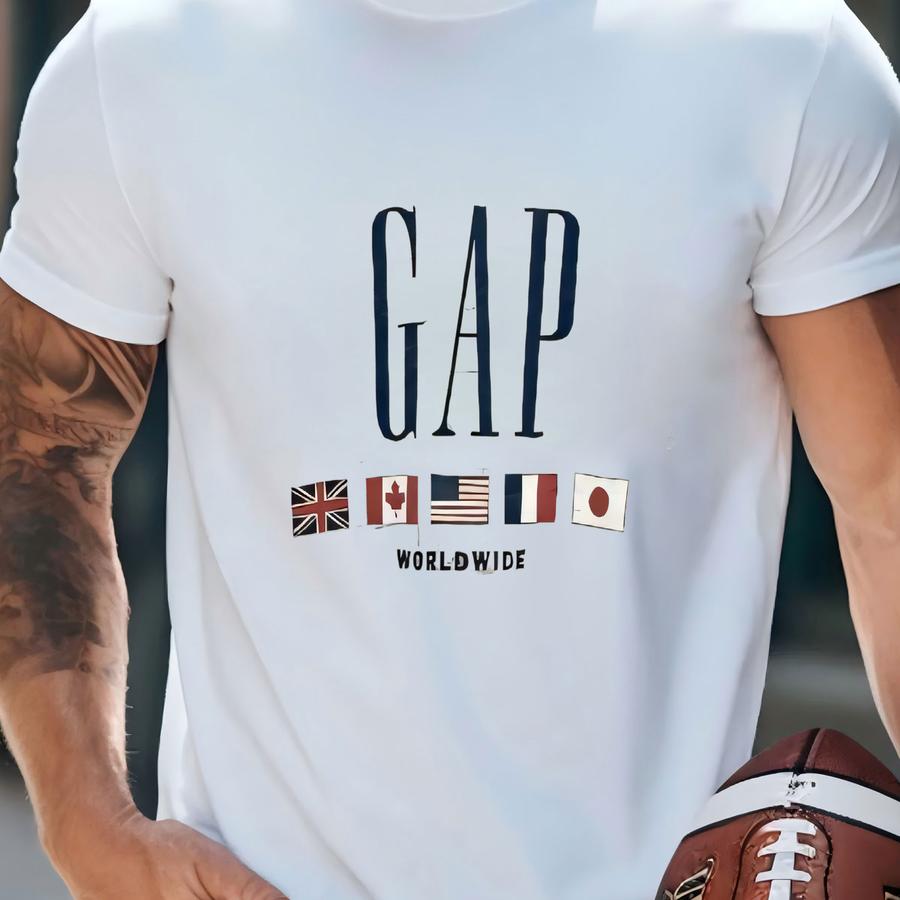 Vintage 1990s Gap Worldwide International Flag Graphic Made In Usa Gray Tee Shirt (size Adult Small) T-shirt
