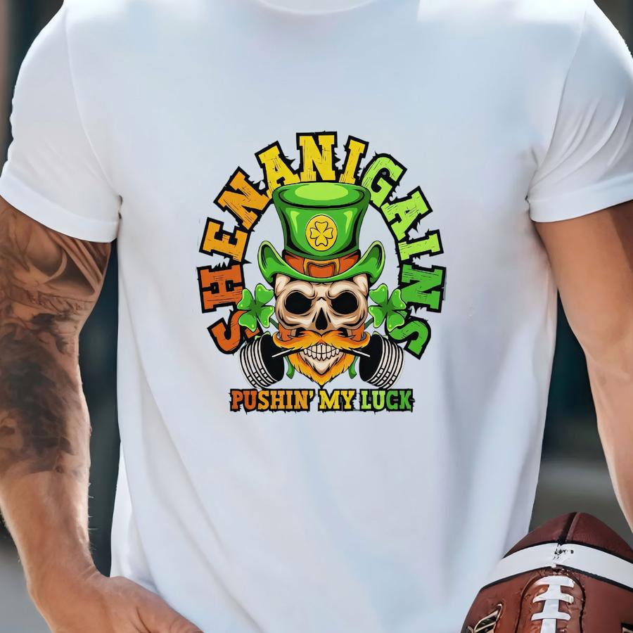 Shenanigains St Patricks Day Shirt, , Pump Cover, Funny St. Patty's Day Workout Shirt, Leprechaun Lifting Tee, Lucky Irish Tee T-shirt