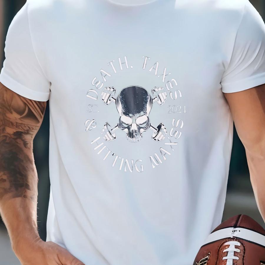 Death Taxes Hitting Maxes Shirt, , Gym Pump Cover, Oversized Gym Shirt, Weightlifting Gift For Gym Rat, Fitness Tee T-shirt