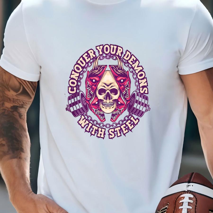 Conquer Your Demons With Steel Shirt, Gym Pump Cover, Weightlifting Gift, Oversized Gym Shirt, Gift For Gym Lover, Gym Tshirt T-shirt