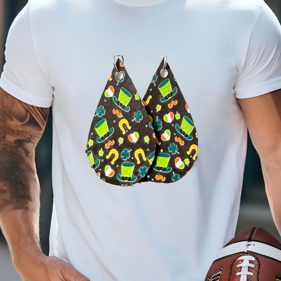 St. Patrick’s Day Print Leather Teardrop Earrings T-shirt