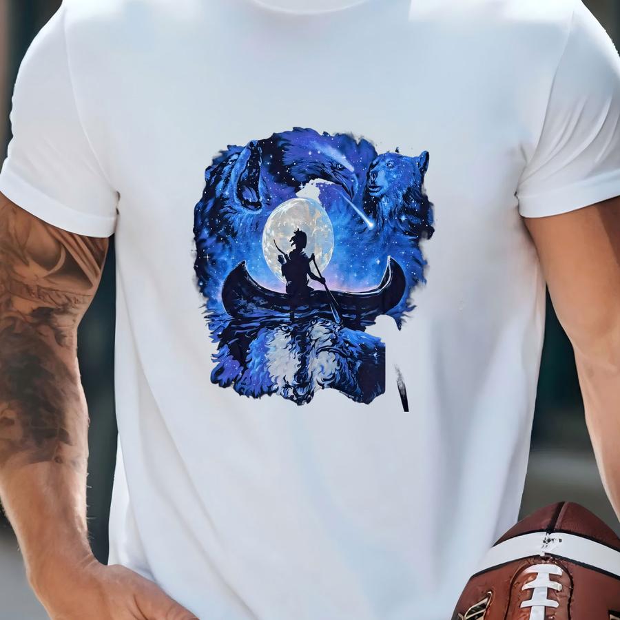 Vintage 90's Nature Full Moon Bear Wolf Eagle Graphic Tee Size Xl T-shirt