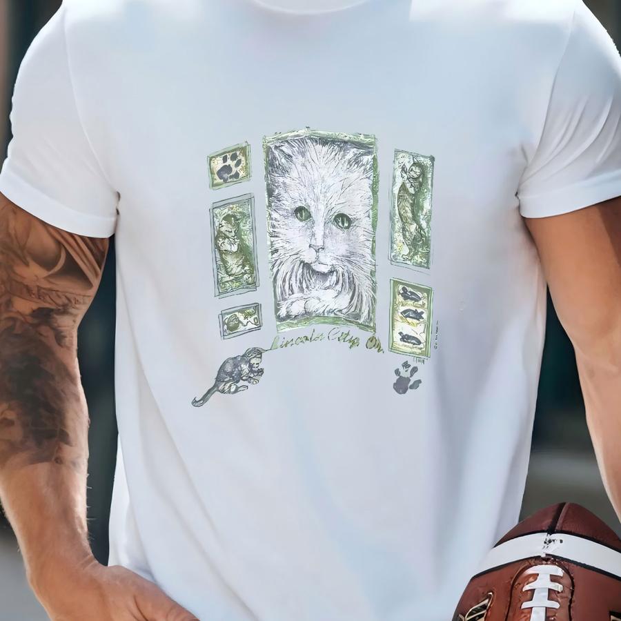 Vintage 90's Cat Portrait Graphic Tee Size Large T-shirt