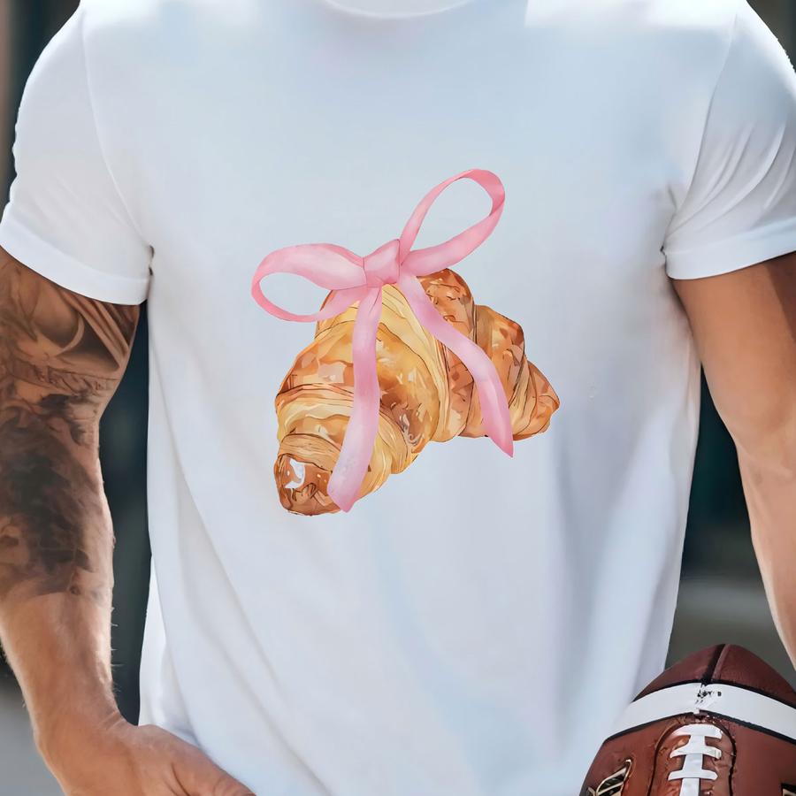 Cute Croissant Baby Tee, Pink Ribbon Bow Tee, Y2k Shirt, Cute Top, Graphic Baby Tee,90s Baby Tee, French Funny Shirt T-shirt