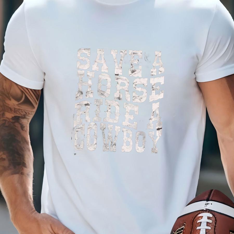 Save A Horse Ride A Cowboy Shirt, Distressed Cowgirl Shirt, Country Concert Tee, Oversized Graphic Tee, Western Graphic Tee For Women T-shirt