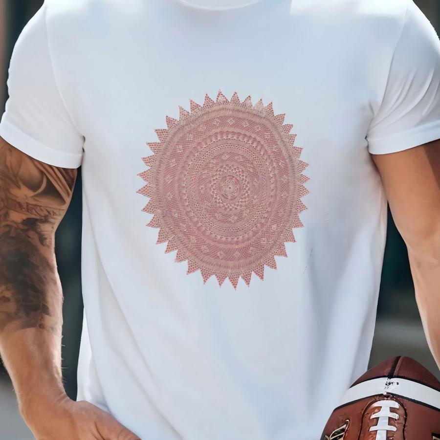 Vintage Framed Needlepoint Picture Pink Oval 80s Cottage Doily Mandala Country T-shirt