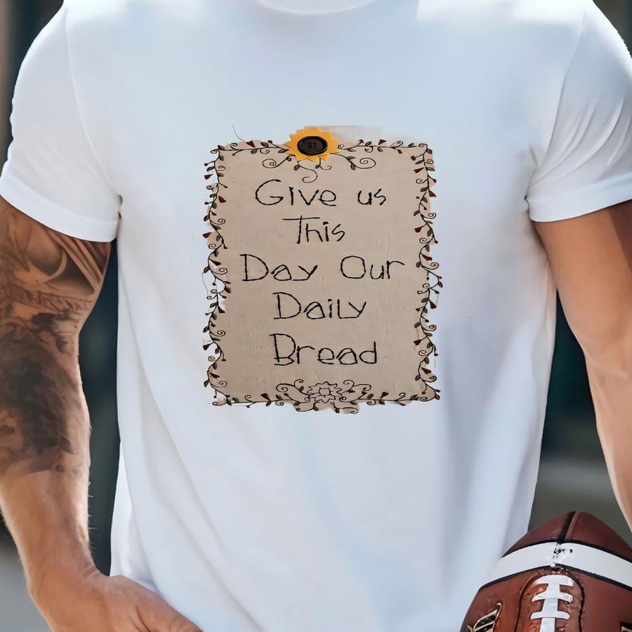 Vtg Needlepoint Prayer Picture Give Us This Day Our Daily Bread Rustic Religious T-shirt