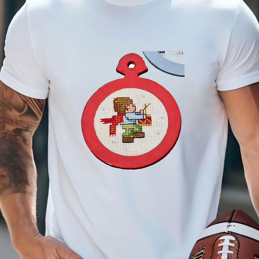 Vintage Christmas Cross Stitch Ornaments 80s Handmade Santa Candle Snow Toys T-shirt